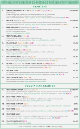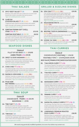 We would like to inform you that we have made some changes to our menu. You’ll find the new menu, launched 12/01/14 below. We no longer have a separate take away menu, instead we ask you to order from the main menu and you will receive a 10% discount on collection. Please note: menus and pricing are subject to change without notice.